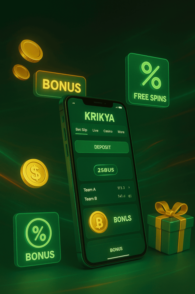 The krikya app gives Bangladeshi players immediate access to generous welcome rewards and daily offers as soon as they complete their account setup. New users can receive a 100% first-deposit bonus worth between ৳1,000 and ৳12,000, depending on how much they deposit. Casino players also enjoy extra boosts, where live games and slots may add ৳500 to ৳3,000 in additional play value. These rewards are credited automatically inside the app, allowing every bettor to start with stronger balance and better betting potential from the first day.